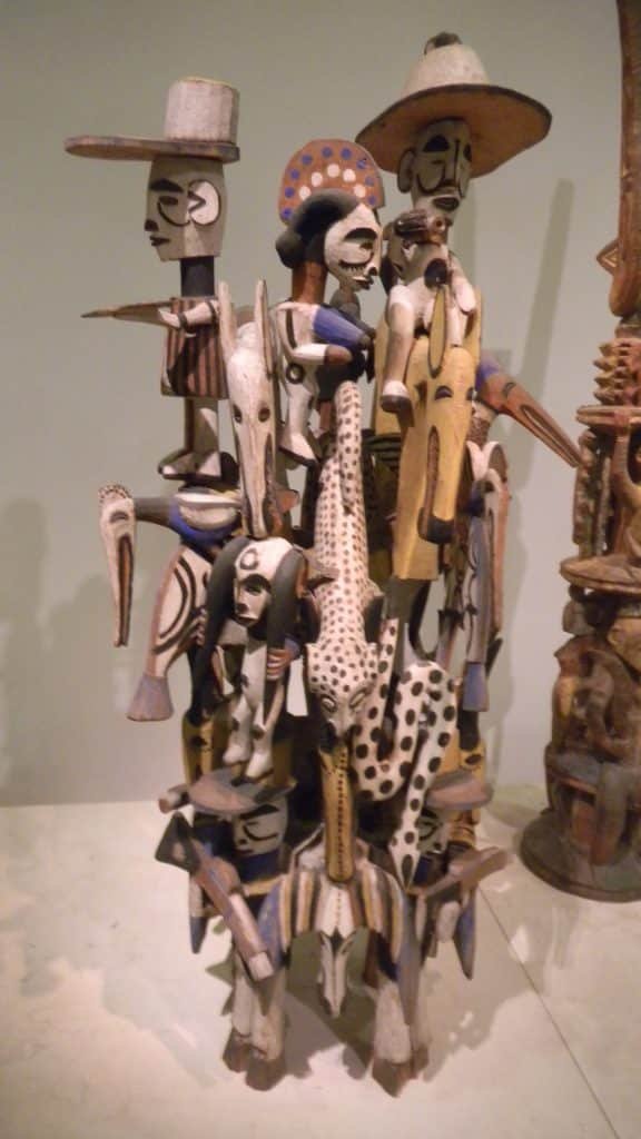 Each Nok figure is unique; it’s not a stock character like the Buddha or a Hindu god. Some Nok sculptures might have represented real people. They sport elaborate hairdos and wear jewelry as though they’re chiefs, priests, warriors, or other dignitaries dressed up for a special occasion. They are in full splendor, with proud expressions of leaders in their best attire. They don’t typically express Indian concepts of the universe’s energies before they condensed into the communities we live in. Rather than existing in idealized worlds, African sculptures are usually of souls that are emmeshed in relationships with other people and spirits.