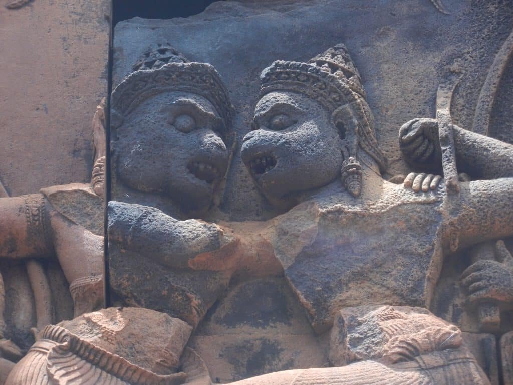Some of the temple’s sculptures are among the most expressive in Khmer history. Above is the dual from the hallowed Ramayana, in which two monkey brothers, Valin and Sugriva, fight to the death. Their bodies are carved so deeply that they seem about to leap from the temple. The fury in their faces can make any seasoned traveler shutter.