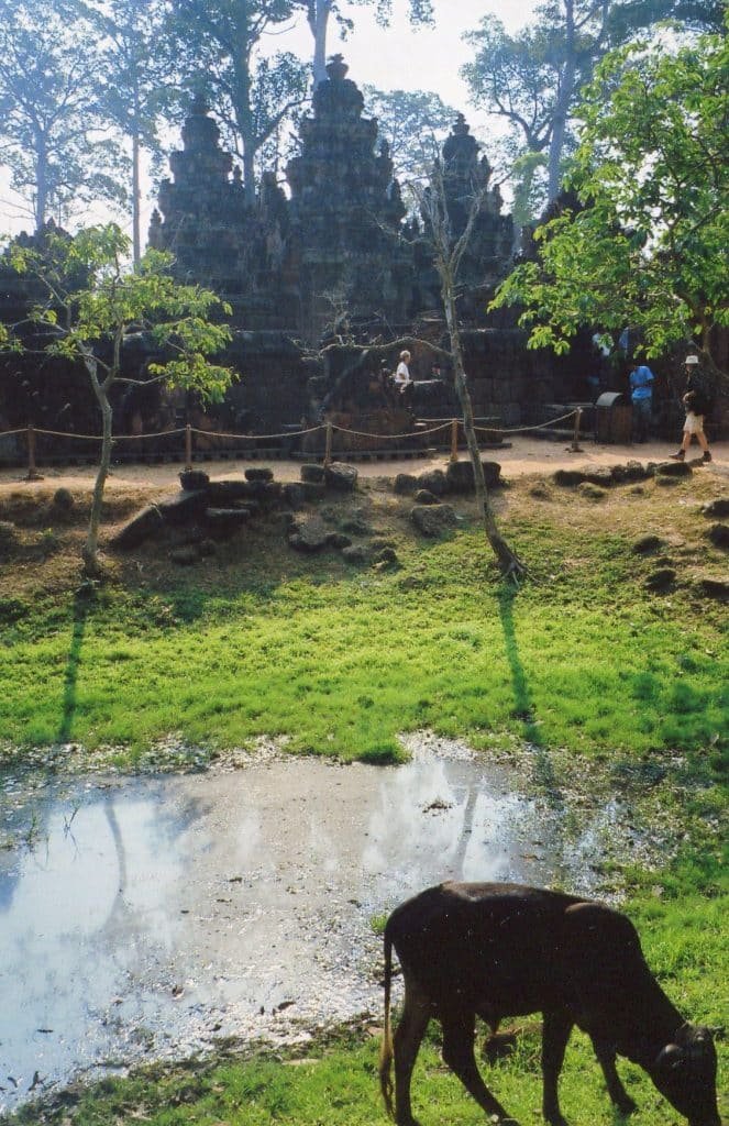 2. A moat once surrounded the temple. Like LoleiPrasat Kravan, and East Mebon, Banteay Srei once sparkled in the middle of limpid waters. The cow in the previous picture seems oblivious to the heritage she grazes by.