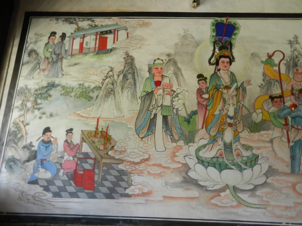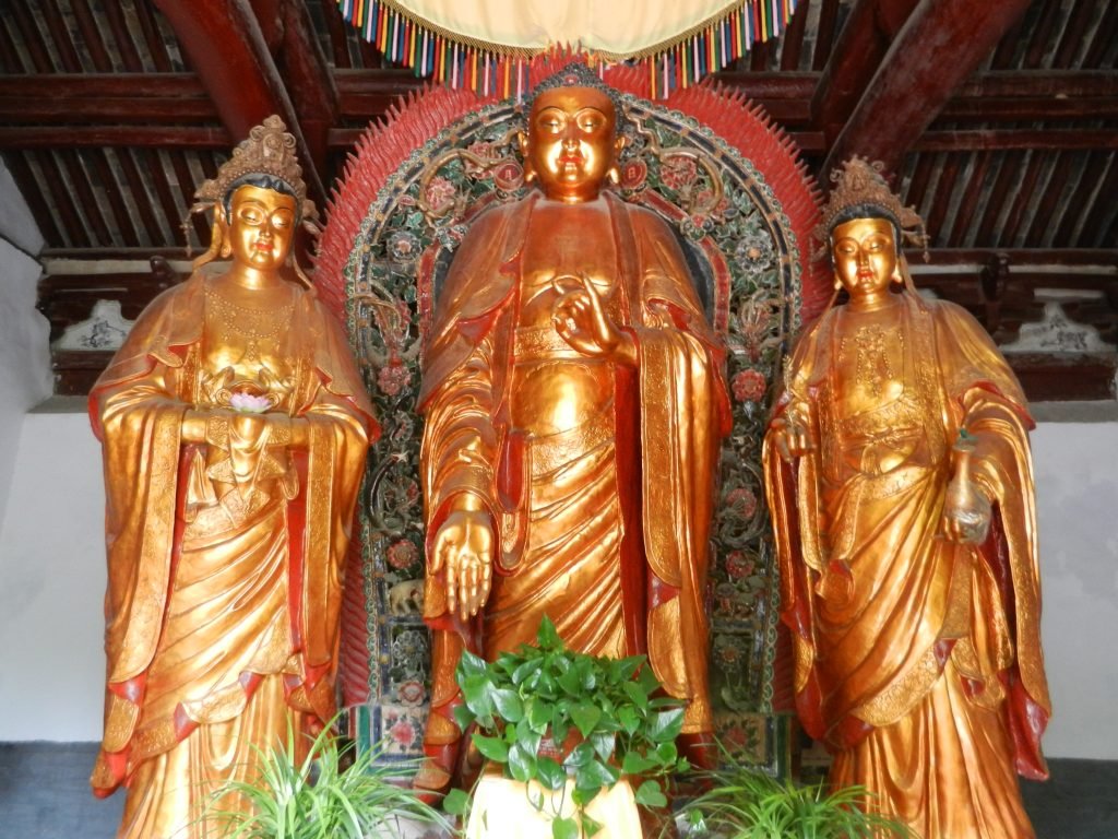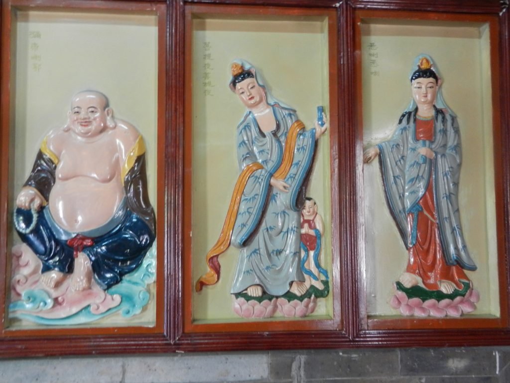Some Mahayana deities were transformed into Chinese sensibilities. The male bodhisattva Avalokitesvara was changed into a gentle female named Quan Yin, who meets souls after death and transports them to a paradise in the West. She was thus associated with the Pure Land. Maitreya was originally the Buddha’s future incarnation waiting to be reborn to purify the world and usher in a glorious new era. Many Chinese incorporated him into messianic beliefs after the Han Dynasty disintegrated, but he was later transformed into Milefo, the Laughing Buddha. With an enormous belly and a joyful smile, he has represented prosperity and a large family, and statues of him are still common in Buddhist temples.