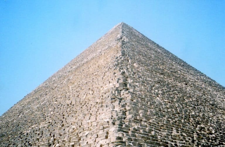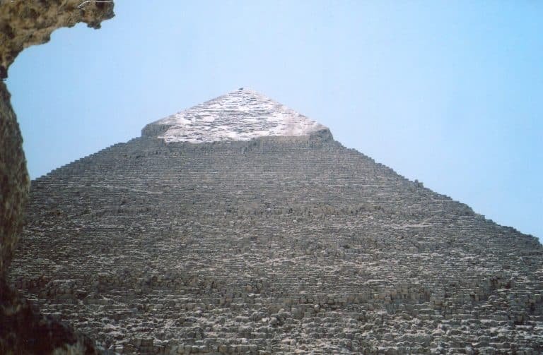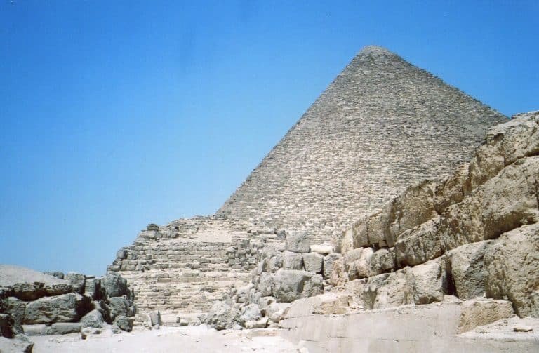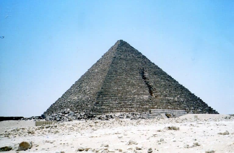 Menkaure’s pyramid at Giza may not look as impressive at first glance. It’s 204-foot height is less than half of Khufu’s (the Great Pyramid), and Khafre’s.