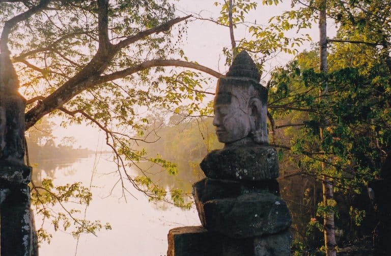 What a beautiful image of peace to see just before the south gate of the Khmer capital, Angkor Thom–a heck of a lot prettier than