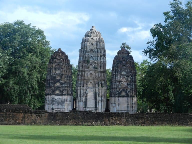 Thais and Cambodians share a long border, but like French and Germans, their cultures have dramatically different traits. Some of Sukhothai’s temples blend both. Wat