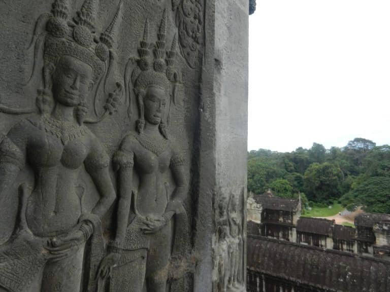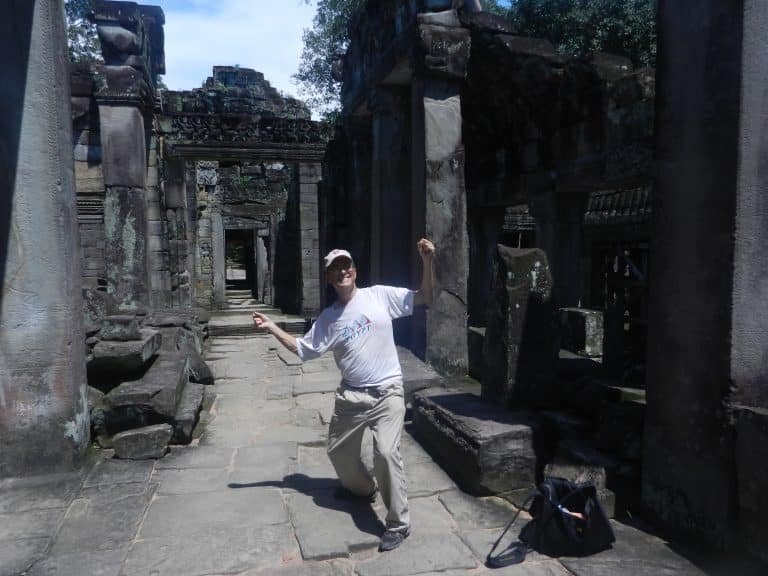 I was in Preah Khan’s Hall of the Dancers, hoping that one of the female celestial dancers carved on the pillars and lintels would materialize and