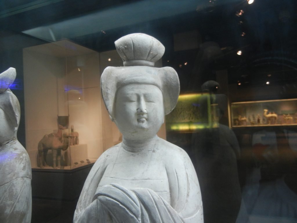 And the rich knew how to enjoy them. Many works of Tang sculpture are known for plump faces, elaborate hairdos, and flowing gowns. These figures populate Shaanxi museums as much as the foreign traders do. The wealthy made both for their tombs to help ensure an equally privileged afterlife. You can almost imagine the woman above pinching her nose if one of those men were to pass by.