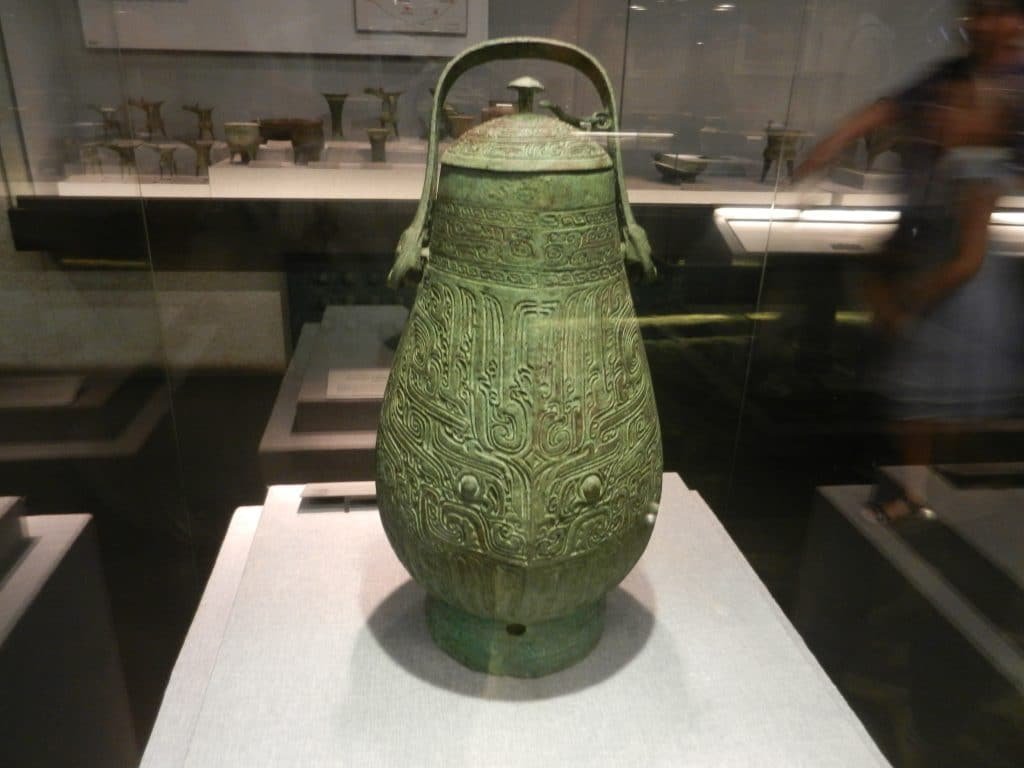 The thin band around the bronze’s body is known as Style I. Then lines of decorations varied in their thickness. This is Style II, and they made bronzes more dramatic. The decorations then spread all over the surface.