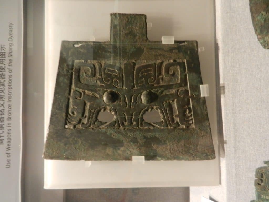 The ceremonial ax blade from the late Shang Dynasty in the above shot sports one. Historians haven’t agreed on what the taotie represented or if it was even supposed to represent anything. But it was symmetrical and animated.