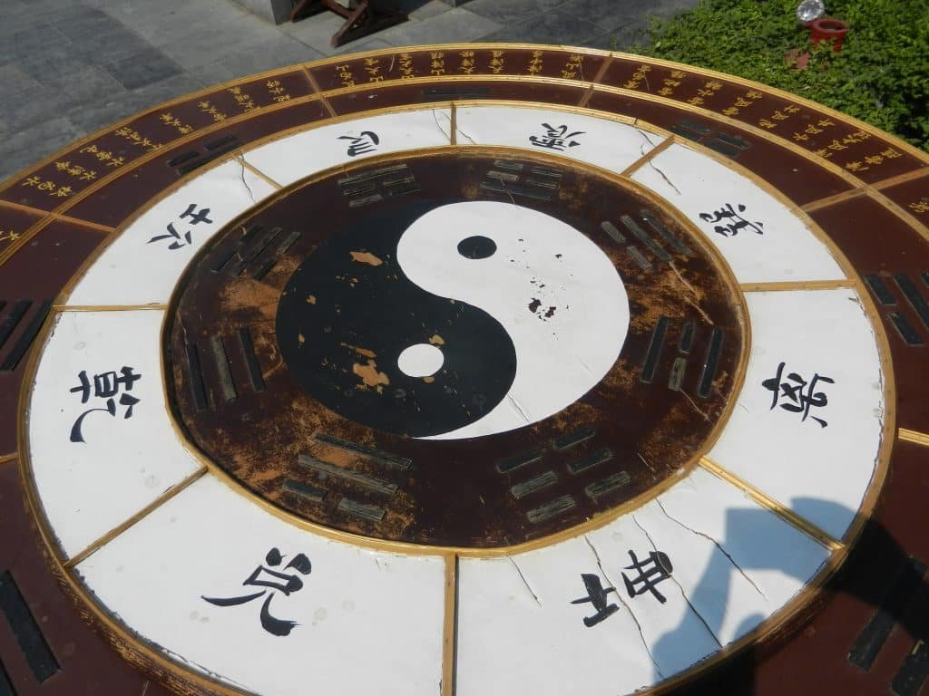 A thousand years after the Shang Dynasty, the famous yin-yang pattern emerged in art. Instead of lines and permanent geometric shapes, the emphasis is on harmonious flow throughout the whole. The two spots in the middle represent some yin being in yang and some yang being in yin. Yang is masculine and yin feminine. But all men have feminine sides, and all women have masculine aspects–nothing is completely distinct. All patterns are integrated in traditional Chinese thought.