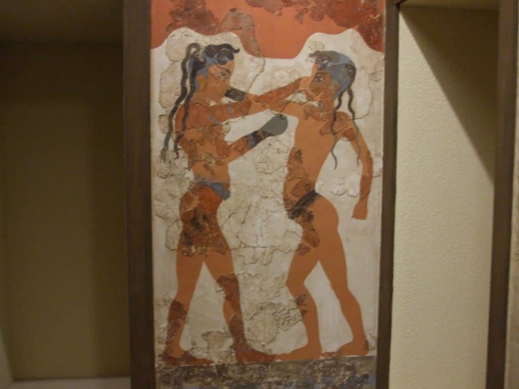 When the Shang Dynasty reigned from Zhengzhou 3,500 years ago, the Minoans on Crete and their colonies (the guys giving each other nose jobs are from Thera) painted realistic images of people and animals. Both of these civilizations developed art that keeps the perspective focused on individual objects that stand out from their surroundings. The existence of the object, its basic forms, and its beauty have been some of the most key ideas in Western thought ever since. I find it amazing that these ideas were emerging so long ago, and that they still shape our ideas of what truth is.