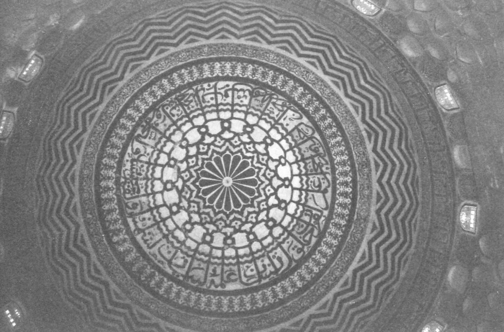 God creates from the center, establishing the main divisions in nature, as the above ceiling in a Cairo mosque shows. The energies that enable growth then issue forth. The foundations of civilization are then developed, including writing, which you can see in one of the middle layers.