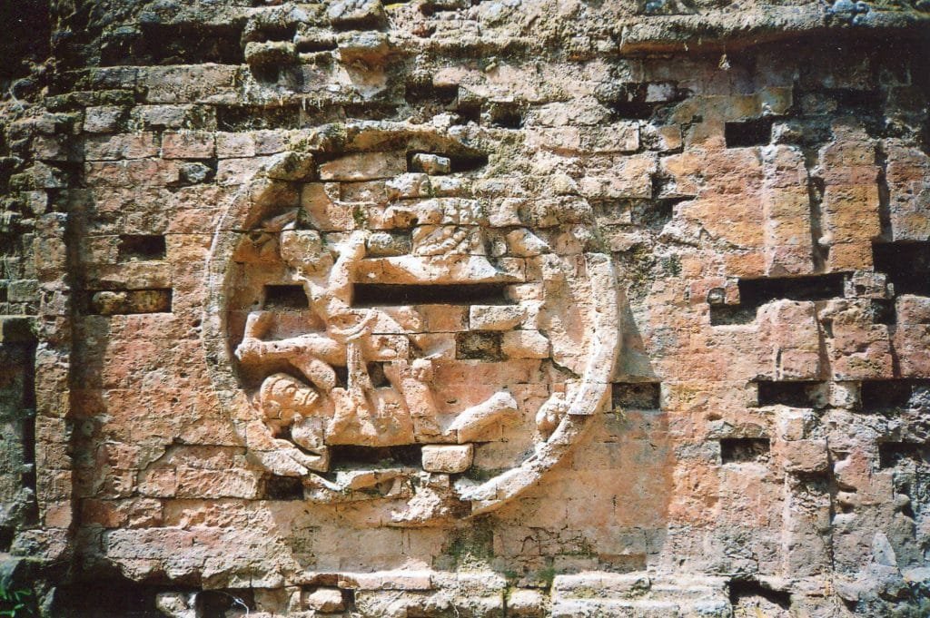 An ancient brick wall surrounds one of the compounds, and it has a row of large circles that contain lively carvings of people and animals. Cambodians loved action scenes long before Angkor Wat’s extravaganzas.