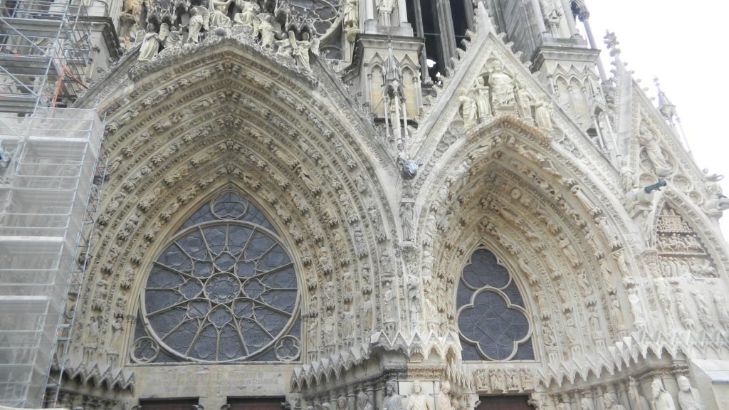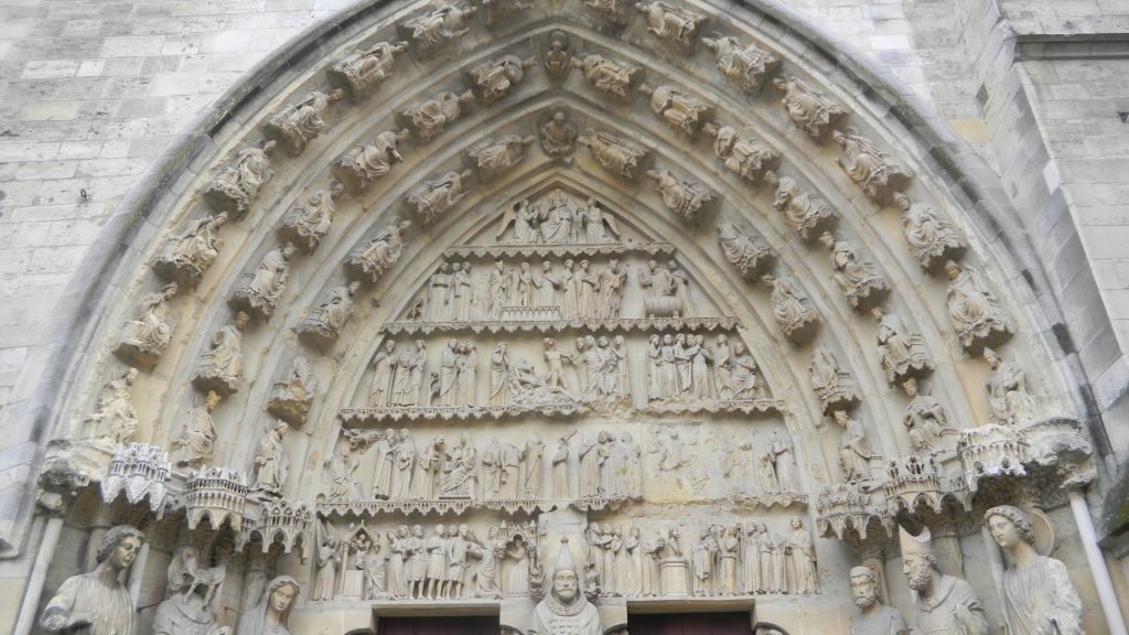 All those sets of 7 mirrored the 7 days of creation which the Bible describes. We thus see a beautiful example of a matching set of 7 figures over Laon Cathedral’s main entrance (in the outer set above).