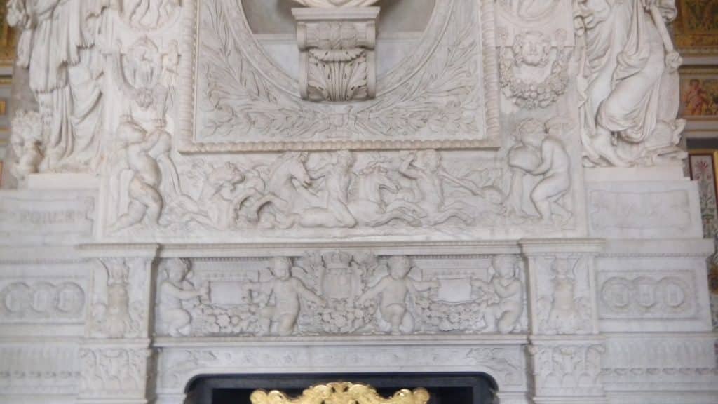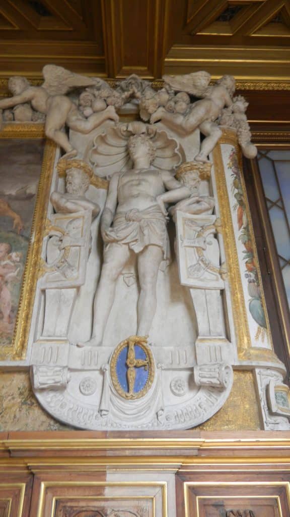 Francois commissioned Rosso to fill it with paintings. He had other artists add statues and plasterwork. The paintings are challenging; they’re crammed with symbolic meanings that historians still haven’t agreed on. Francois also kept scholars around, including one of Northern Europe’s most renowned humanists, Guillaume Bude. The dense scenes evoke over-busy male brains–guys discussing big and useless ideas long into the night over generous amounts of alcohol. But France’s mental horizons were growing beyond its medieval past, so we can understand the enthusiasm that went with the discovery of the Italian Renaissance and ancient art.