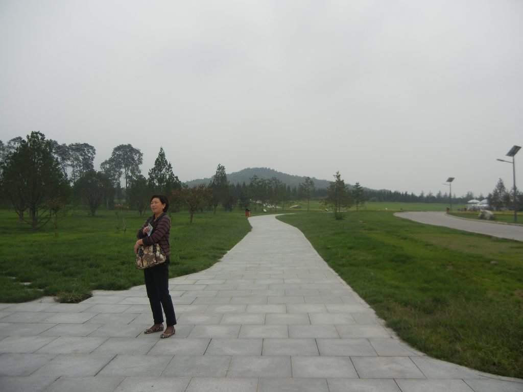 The central part of Qin Shihuang’s burial complex was a funerary park that two rectangular walls enclosed. The outer measured 2,165 meters north to south and 940 meters east to west. A pyramid-shaped mound is in the southern half.