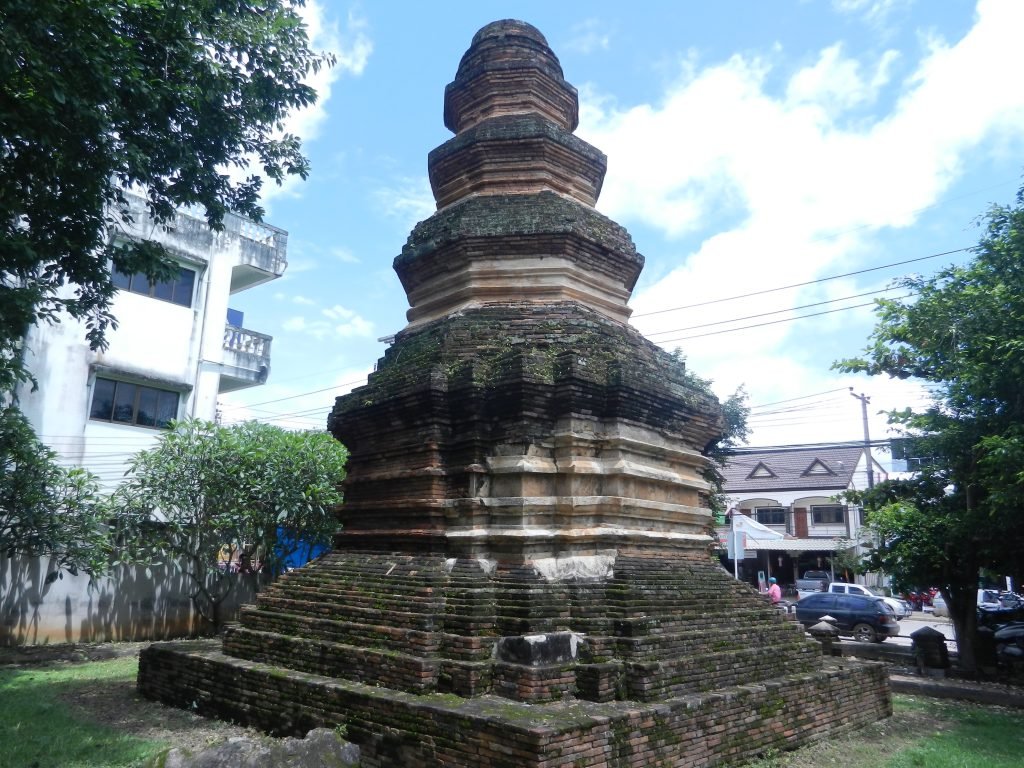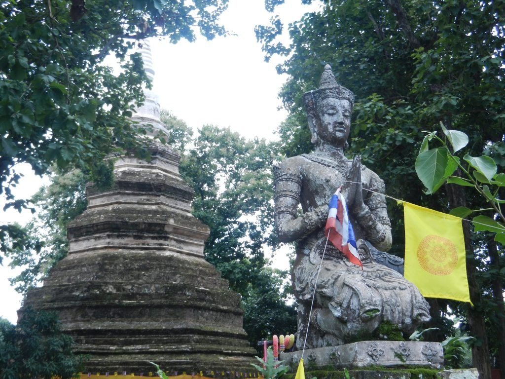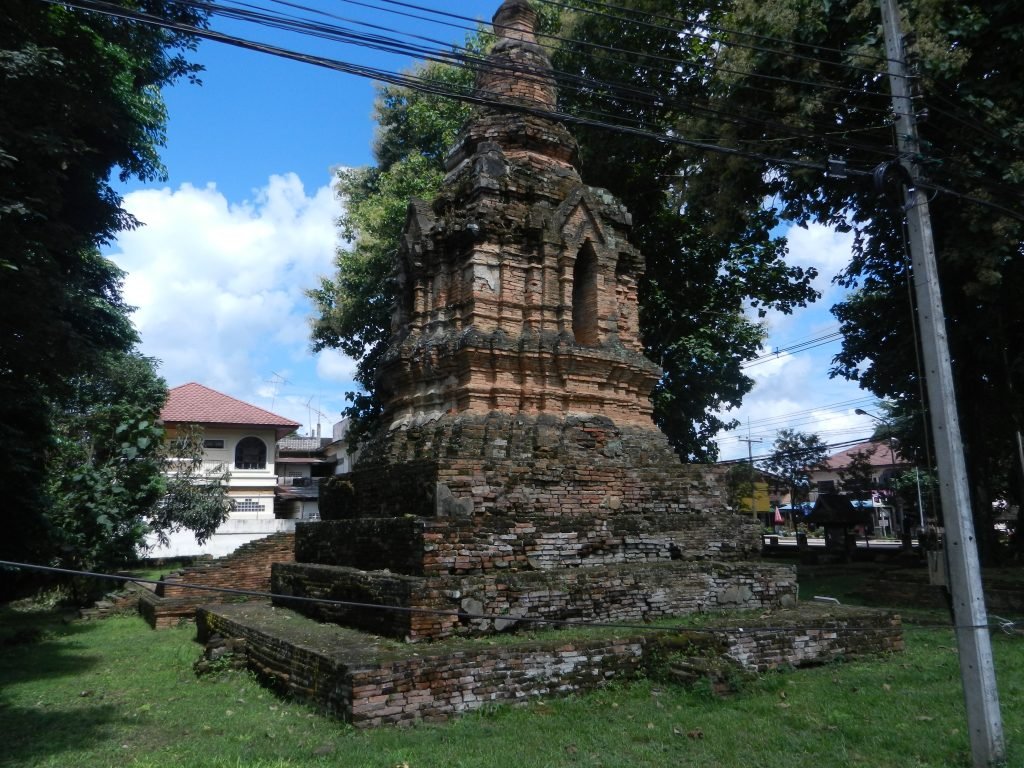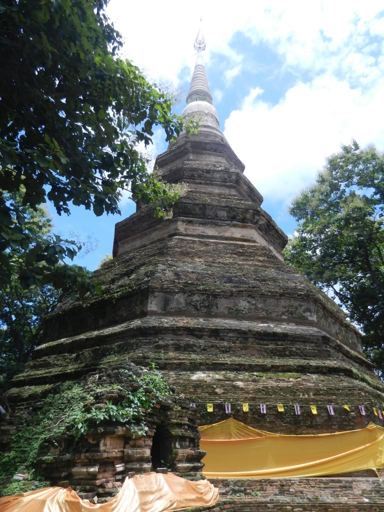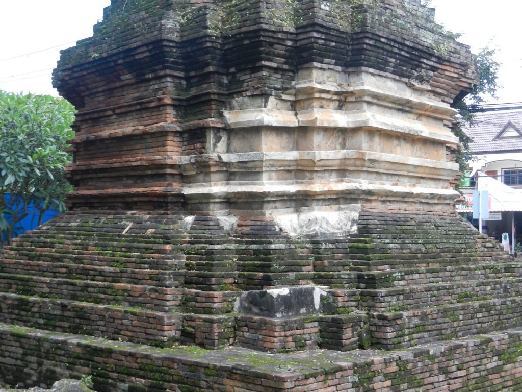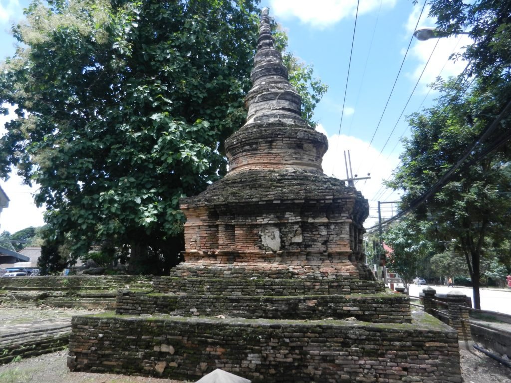 Most were much smaller than Wat Phra That Chedi Luang, but their forms were entrancing. The above shrine follows the three worlds cosmology that Thai Buddhism teaches. The bottom embodies the material world we live in. The middle section symbolizes the heavens. Its indented corners and niches show that this world’s structures are more subtle. The conical top is the formless realm.