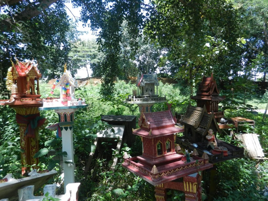 The above spirit houses enliven one of the entrances to the town. A lot of traditional Thais have believed that spirits linger around settlements’ entrances, so they placate them with shrines and offerings to keep them from entering the community.