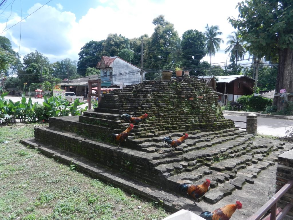 The Chiang Saen shrine below doesn’t look like much. Only the roosters seem impressed.