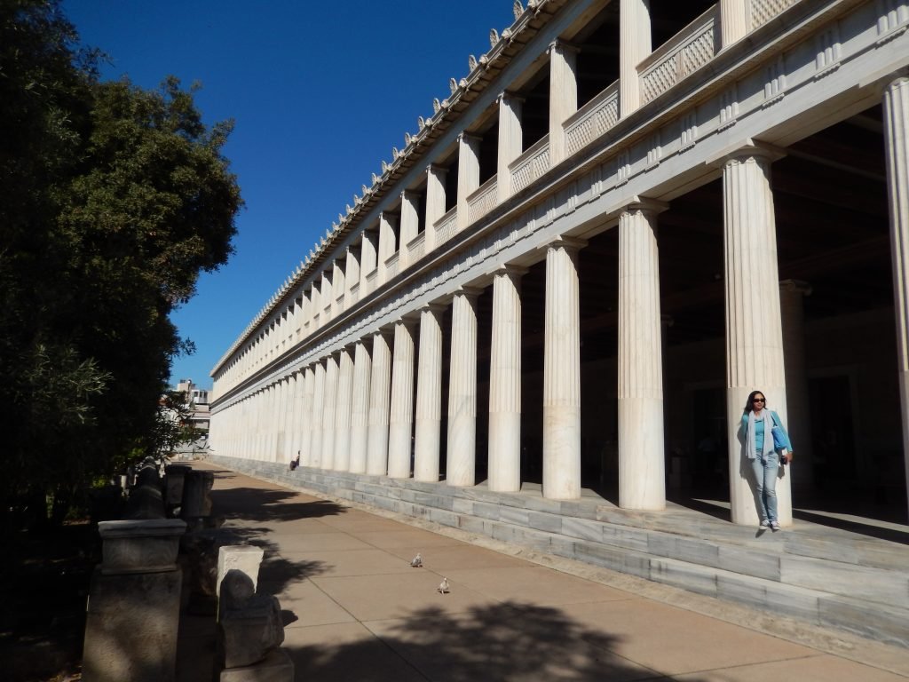 The agora in ancient Athens was an open field with buildings around its borders. Their colonnades are in straight lines.