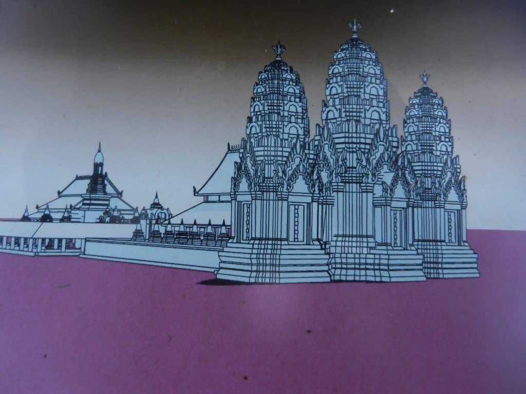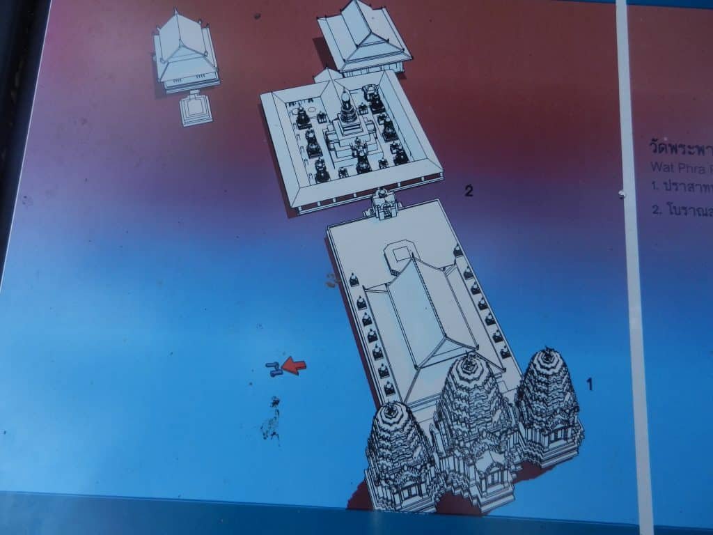 The temple is entered from the south, and Thais added a line of two assembly halls before the towers and converted the central tower into a stupa.