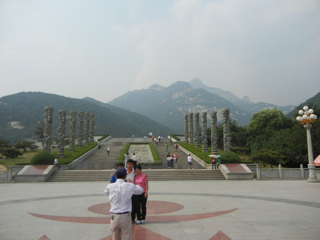 Though he didn’t find them, Qin Shihuang established the feng and shan sacrifices in which he ascended Mount Tai, in Shandong (in the two photos above). He thereby harmonized himself and the state with heaven and the most exalted gods.