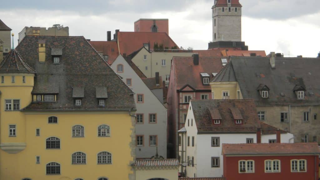 Crowded cityscape from the Middle Ages, Regensburg, Germany