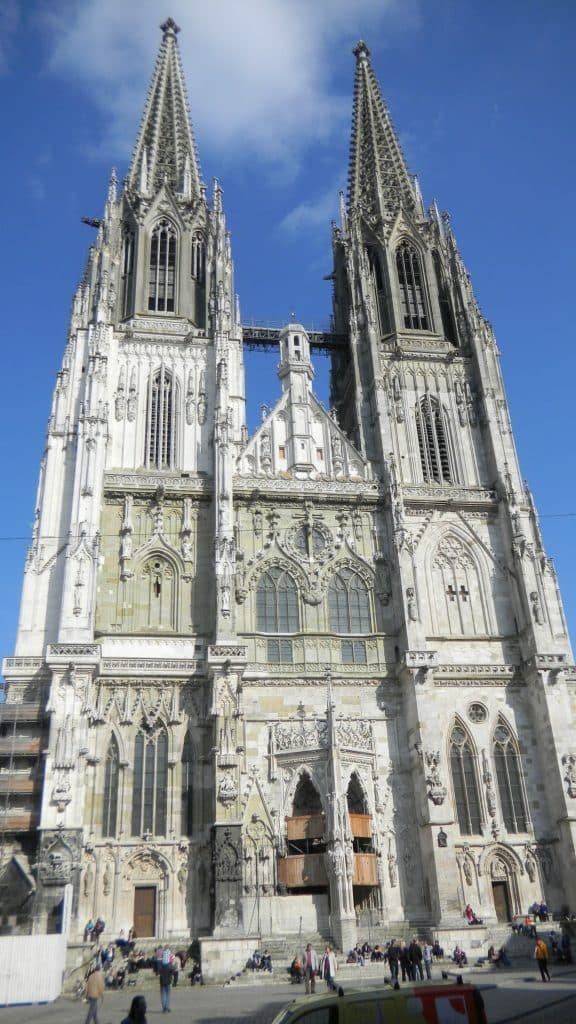 I immersed myself in medieval town life in Regensburg, which is one of the best-preserved northern European towns from the 13th century. It stands on the Danube in an area that has been a ritual center and trading hub for at least 3,000 years. The town became the seat of the Bavarian dukes in the sixth century, but they moved west to Augsburg in the 14th century, and Regensburg became something of a backwater. I felt lucky because its medieval townscape didn’t get the Renaissance makeover that Augsburg had in the 16th century. I wandered through it, surrounded by narrow winding streets with tall wood-framed houses on each side, crowned by steep gabled roofs. A few homes are square stone towers over 100 feet high. Some of the town’s wealthiest lounged in their upper chambers and looked down on their neighbors.