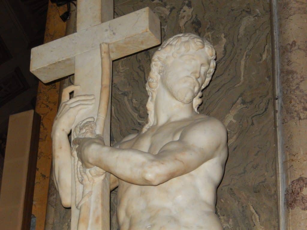 Jesus is the only son of God. He lived and died once for humanity’s salvation. The Old Testament prefigures the New Testament, which details Jesus’ life. He fulfills God’s glory and love. The ultimate expression of God’s power and love is the begetting of a son who saves the people He created from their own sins (the statue in the below photo is by Michelangelo).