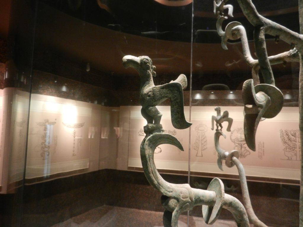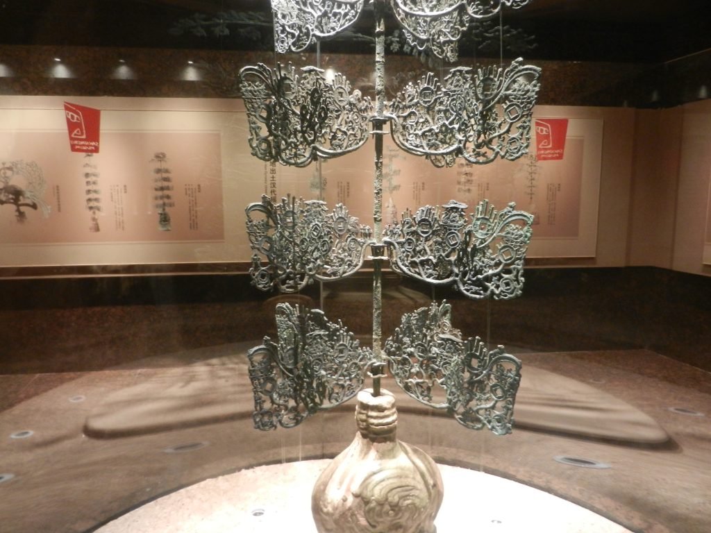 The Sanxingdui culture also made large bronze trees. Their branches are full of birds, fruit, petals, and pendants.