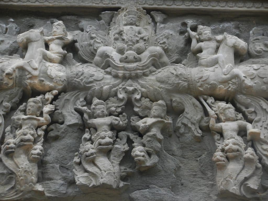 These images might seem fanciful to Westerners, but they reflect real life in Cambodia. When Preah Ko was built in the late ninth century, people were clearing jungles for the growing population’s rice crop. They wanted to keep wild vegetal growth at bay and foster enough crop growth for a large state to flourish.