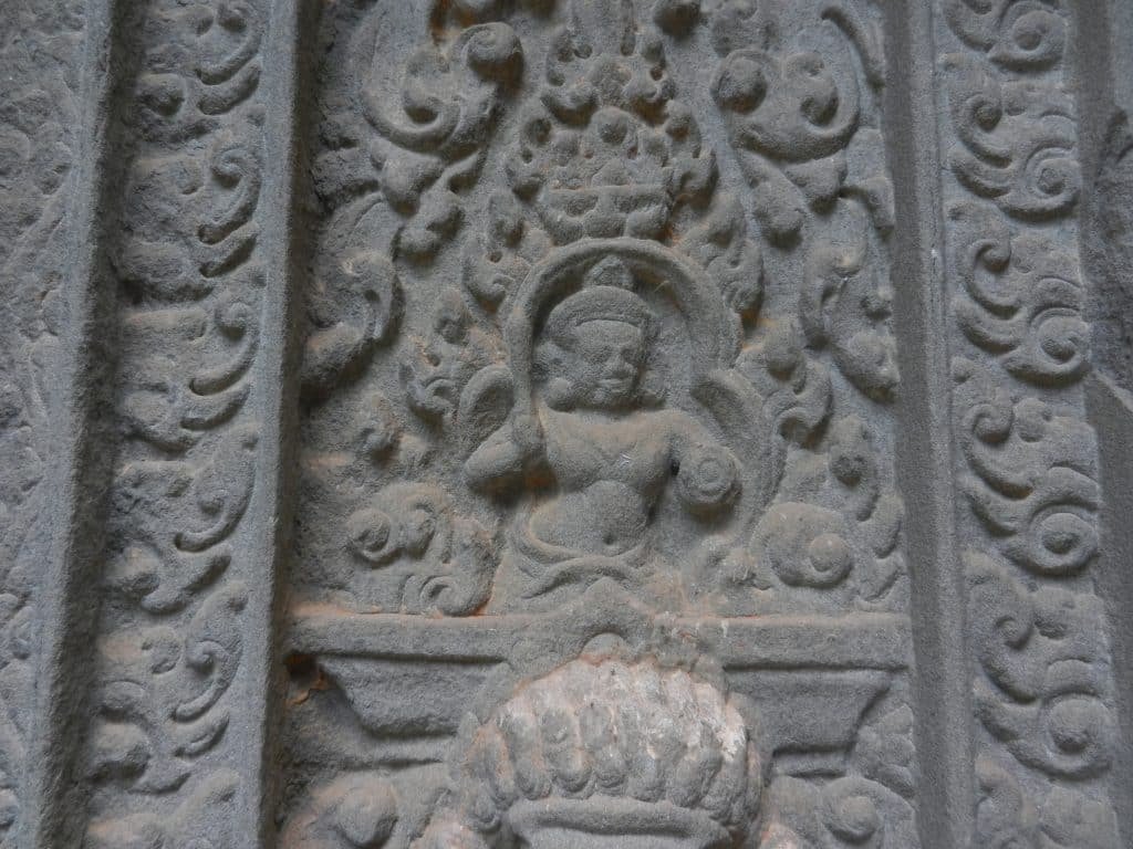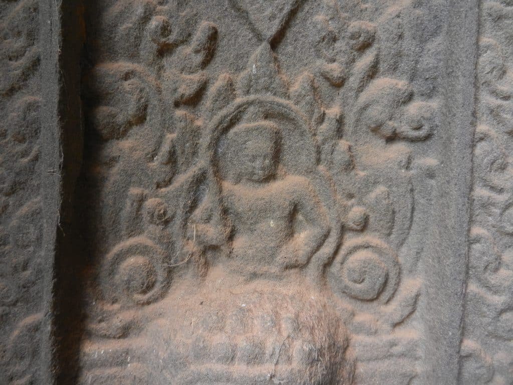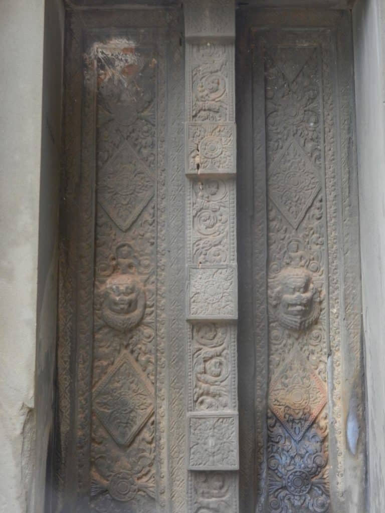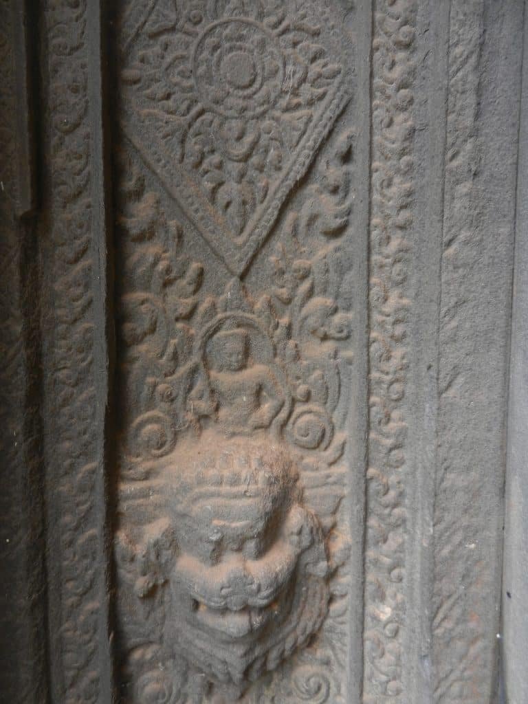 Here’s a close-up of the door. The carvings are dense and animated as though they have potency to bring the rains and to keep the Khmer political house in order. In other words, do what the king says because he’s linked with nature’s powers. But they’re also elegant.
