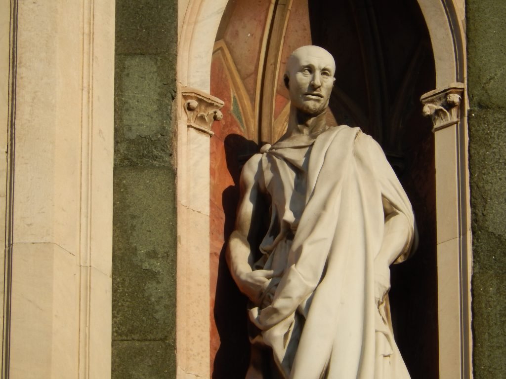 Andrea del Verrocchio was able to immaculately mix both perspectives when he created the sculpture of Jesus and doubting Thomas on Orsanmichele Church in Florence in the late 15th century.