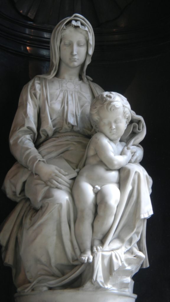 Michelangelo’s Madonna and Child (now in Bruges, Belgium) uses traditional Platonism to show an idealized spiritual world.
