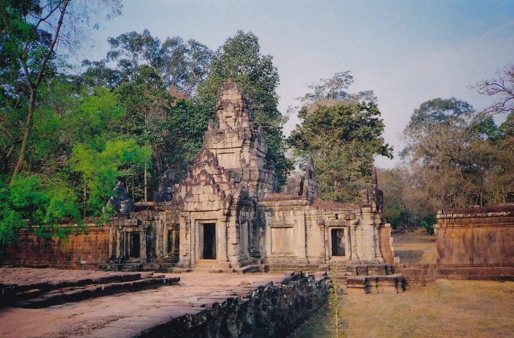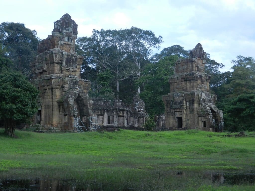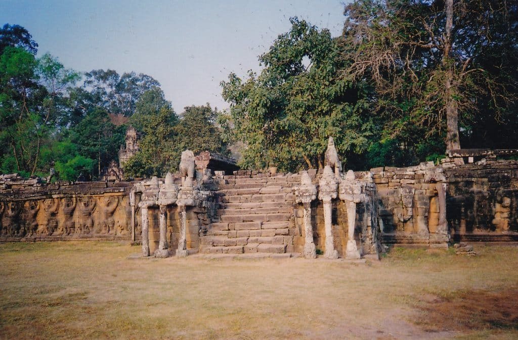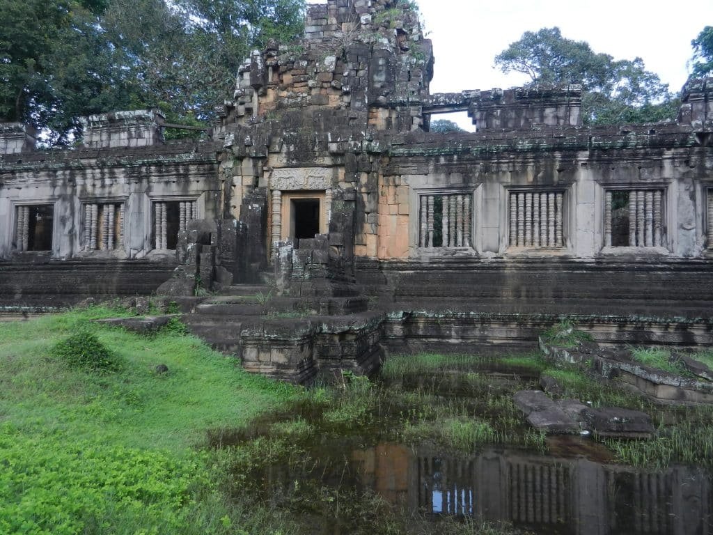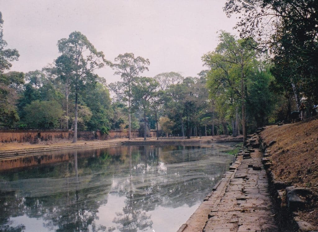 I trampled through the area, imagining how Khmer royalty lived. A terrace with friezes of birds rose between two of the pools. Perhaps dancers and orchestras with tinkling gongs performed on it. Long rectangular foundations of royal apartments and storerooms spread between the pools. Spaces in the palace alternated between commanding halls and open areas with sparkling water (so little remains today that only diehard fans of Khmer history or art would find them worth their time).