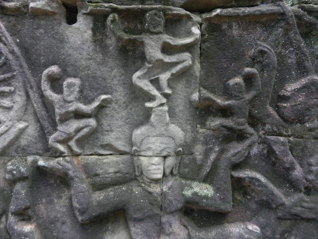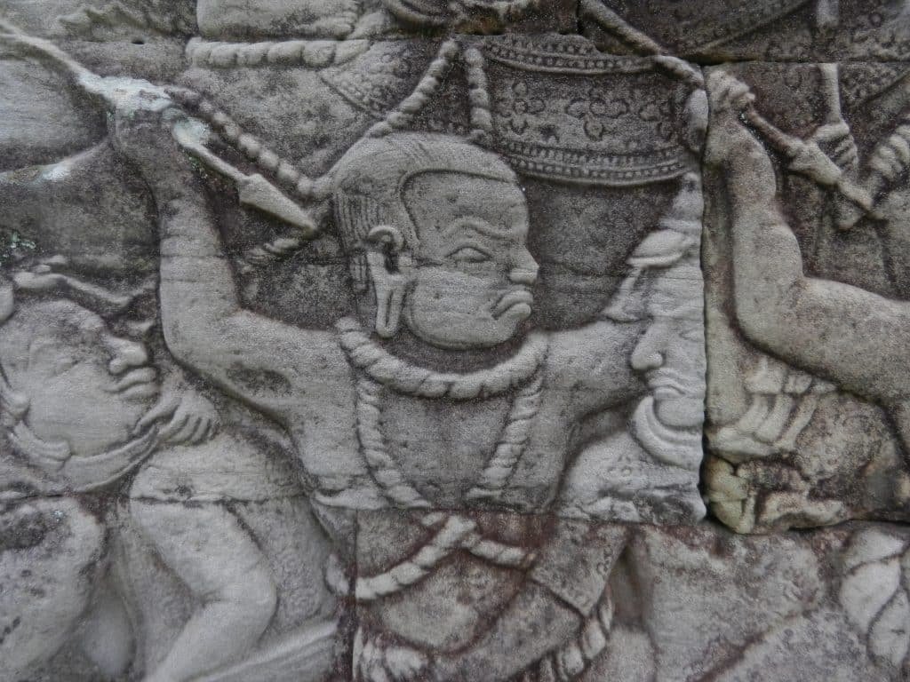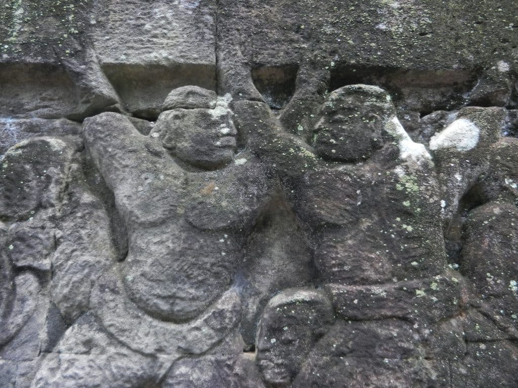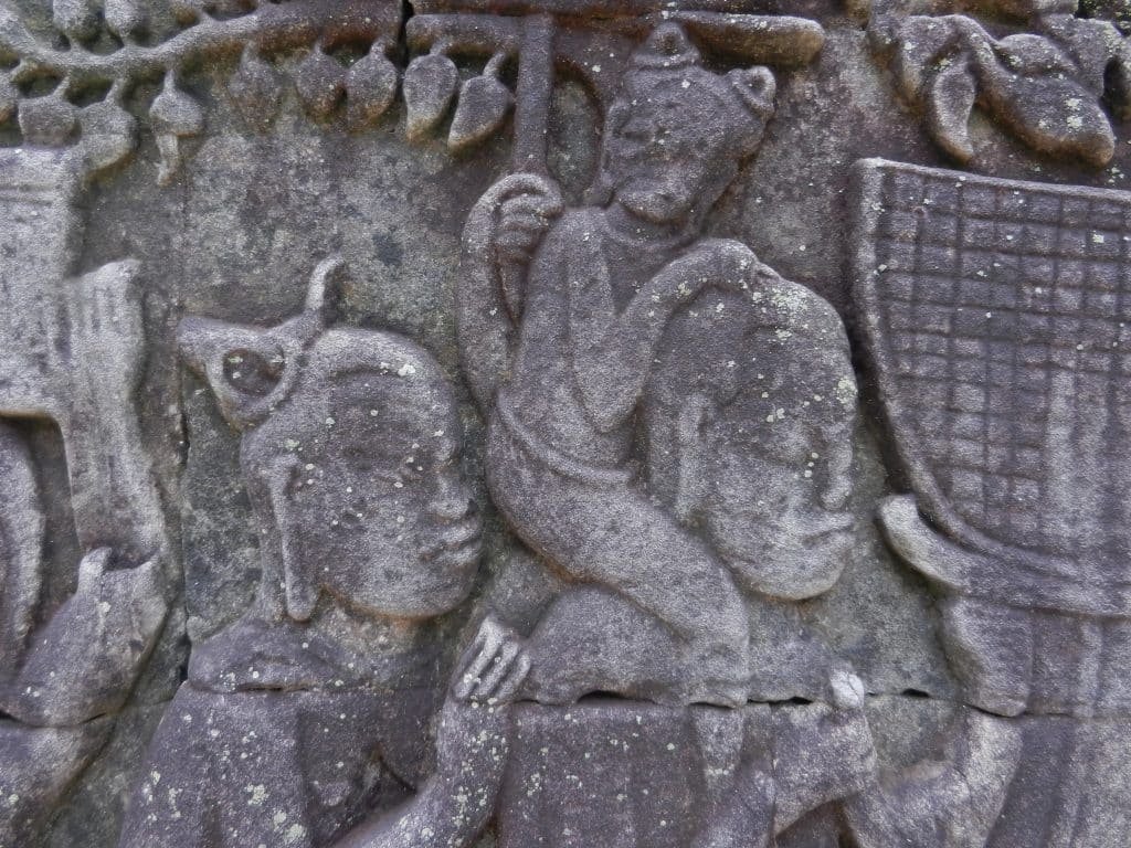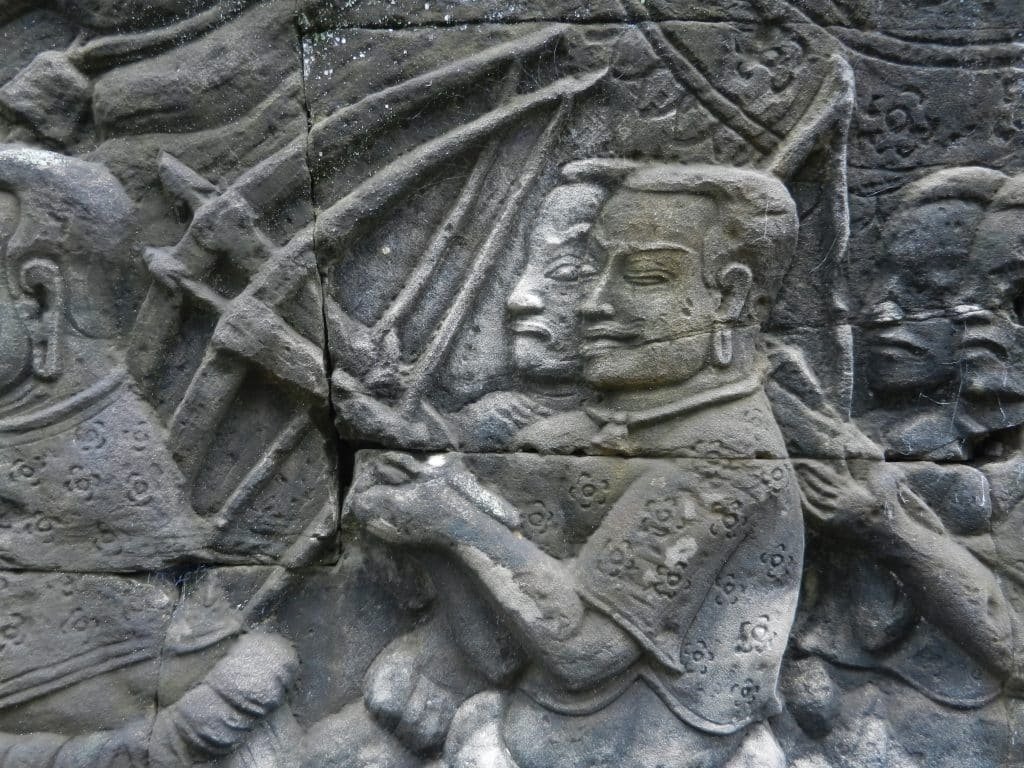 Many Bayon fans enjoy its sculpture because much of it shows real people. Angkor Wat’s friezes mostly depict the king, nobles, gods and characters from Indian mythology. The Bayon shows ordinary folks.