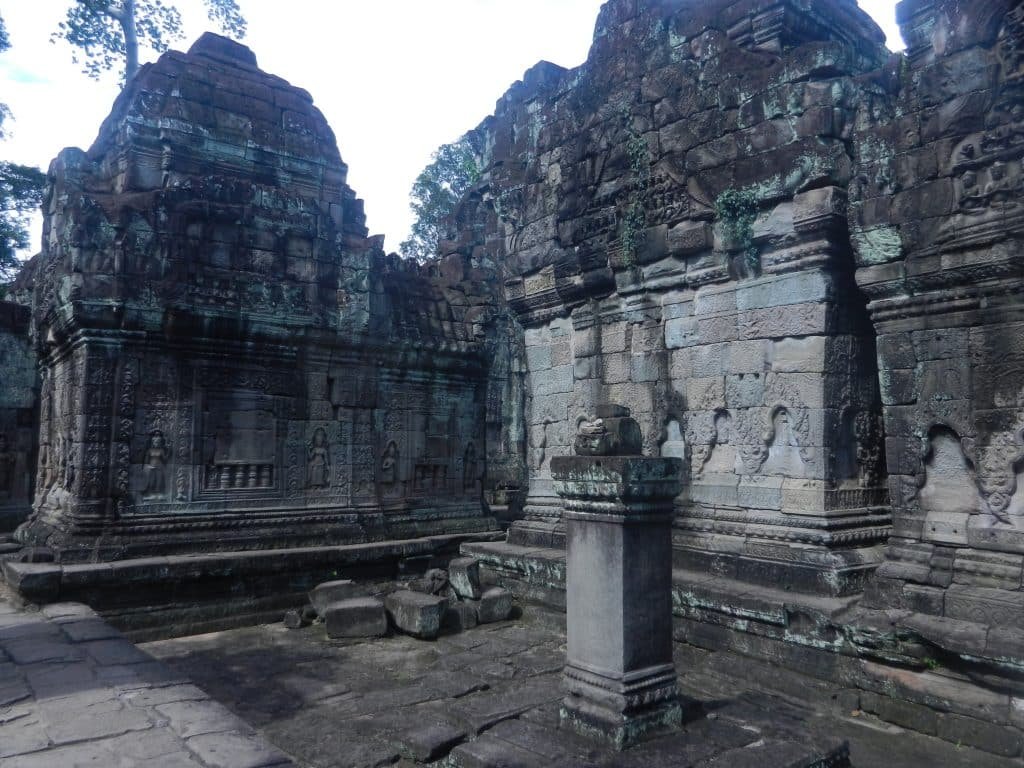 Jayavarman VII had converted to Mahayana Buddhism. But true to Southeast Asia’s tendencies to blend multiple religions, he mixed Buddhism with Vishnu worship, Shiva worship, and Khmer ancestral cults. Ta Prohm and Preah Khan embodied a full and syncretic view of the world as the Khmers saw it.