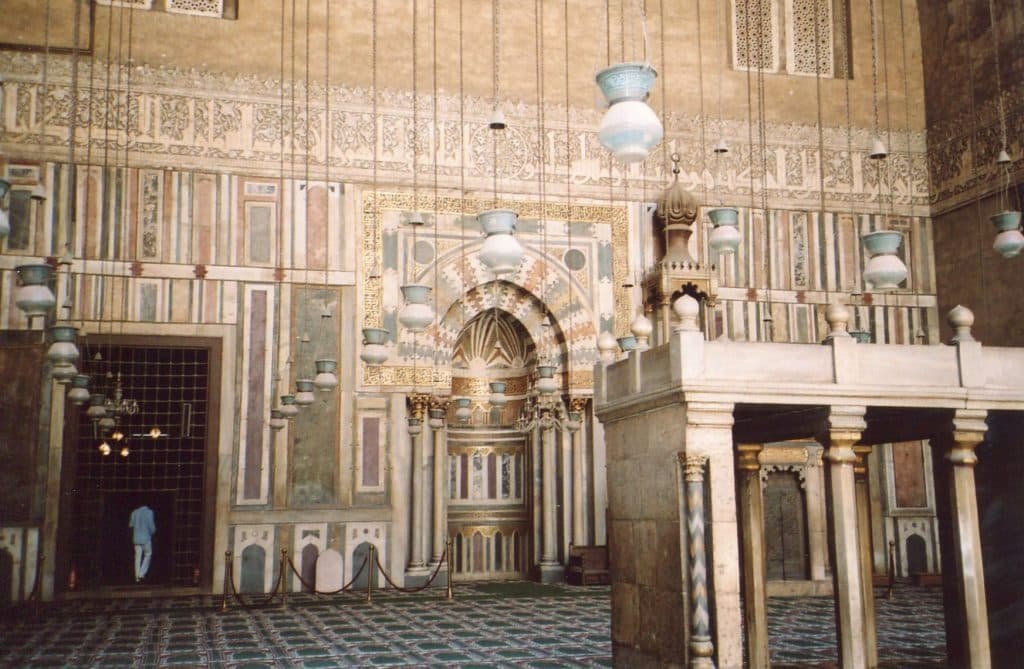 The two pictures above are of the most central part of the mosque, the mihrab. I took the top photo in Jama Masjid, Delhi (the largest mosque in India), and the bottom shot in the Sultan Hasan Mosque, in Cairo, Egypt. The mihrab faces the Ka’ba, in Mecca. Every Muslim turns towards Mecca when he prays, so all worshippers in the mosque face the mihrab.