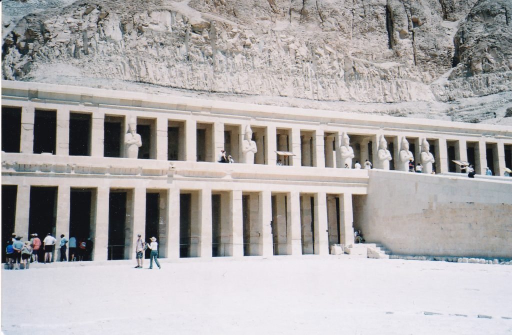 She built her temple next to a mortuary shrine of a king from the Middle Kingdom (2040–1650/40 BCE), Mentuhotep II (I took the below photo from her temple).