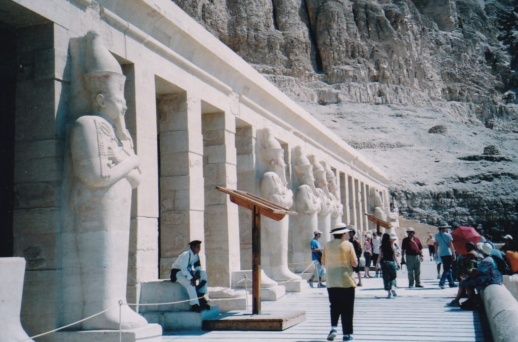 Hatshepsut’s temple set a dramatic standard for expressing order and an optimistic view of the world when the New Kingdom was still in its early stages (this gentleman is resting in the court on its upper terrace).