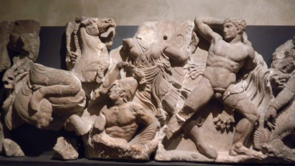 Odysseus and Ajax squared off for a wrestling contest. They wrapped their thick, brawny arms around each other, and so tight was their embrace that their limbs looked like a building’s rafters fastened against each other. Neither could immediately throw the other. Their bones crackled, their flesh reddened, welts rose and blood flowed on their ribs and shoulders, and sweat poured down their trunks. Ajax finally hoisted him, but the always clever Odysseus kicked him in the back of a knee and threw himself onto his chest as his mighty opponent fell. Both kept grappling and clawing until Achilles stopped the contest, declaring it a draw. He didn’t want two of the best Greek warriors injuring each other in a sporting match.