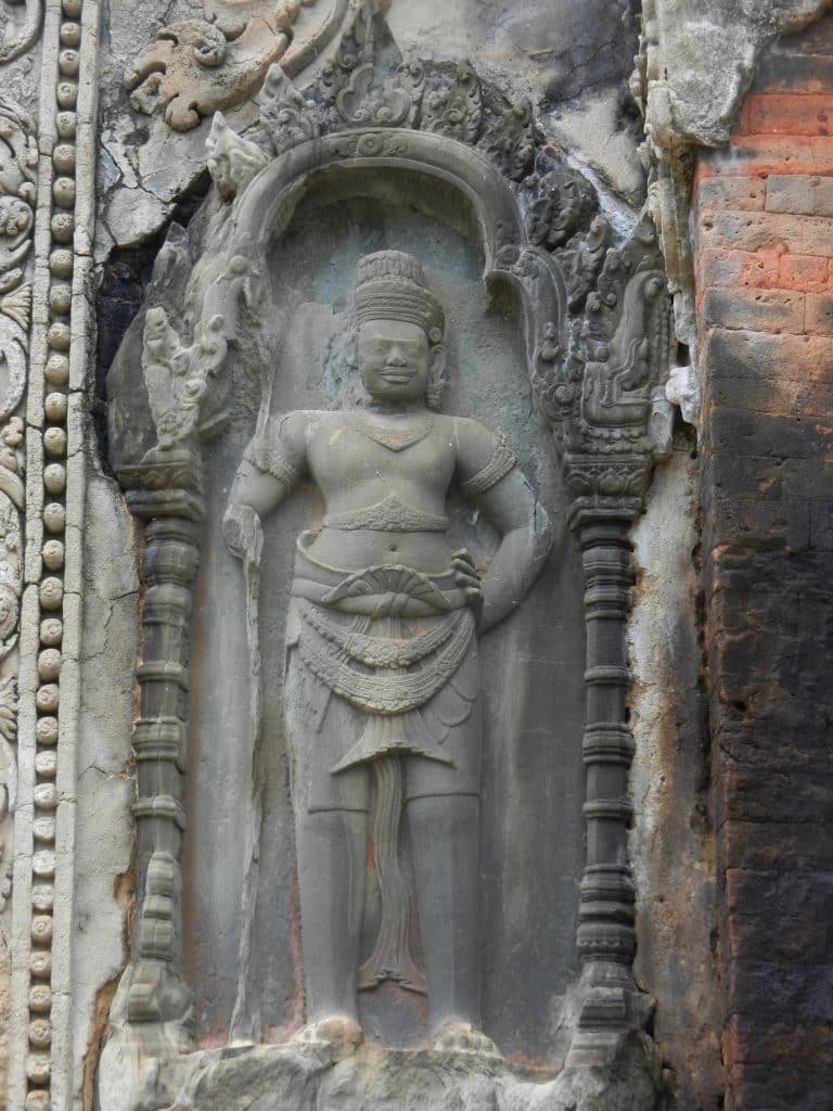 Those figures were different from the ancient Khmer sculptures of Hindu gods, Buddhas, kings, and warriors (one at Preah Ko is shown below).