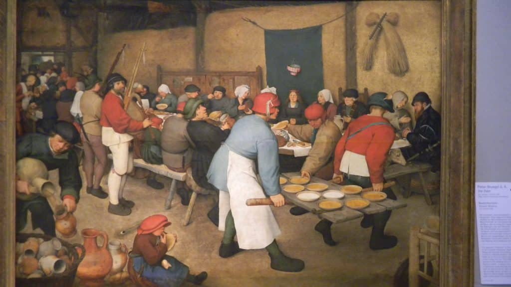 People struggled to squeeze livings from its sandy soils. Even at weddings, their food was usually humble, as in Pieter Bruegel the Elder’s painting (below). And neighboring countries were often rude. The French ruled the area in the 13th century, and the Spanish took it over in the 16th century. Both taxed its hardworking people and sacked their towns when they rebelled. Why pick on this frugal land?