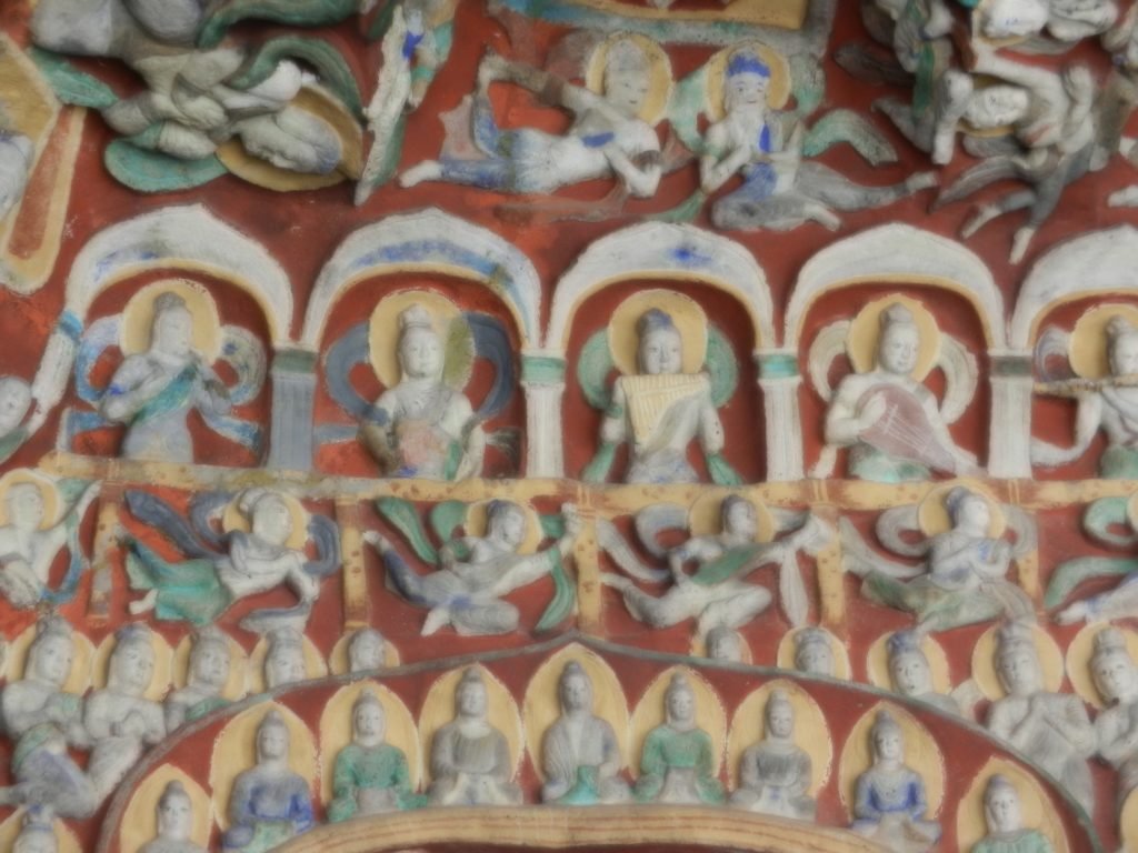 Music has been deeply appreciated in China since antiquity. These celestial musicians look like transplants from a well-fed royal court.