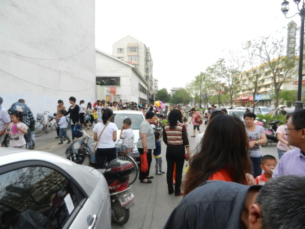 Parents were picking their kids up from school in the above shot. Most of the youngsters are probably immersed in social media.
