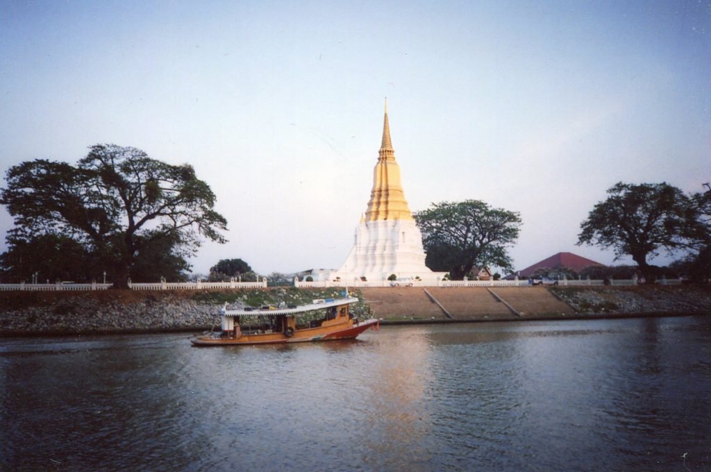 I saw how these combinations of water and lightened forms can become magical when I viewed Suriyothai’s monument from the other side of the river. Long, narrow boats glided by. The water, the slender vessels, and the stupa in the background intermixed.