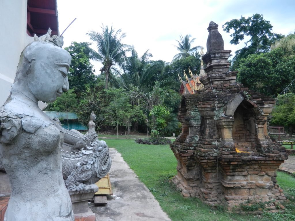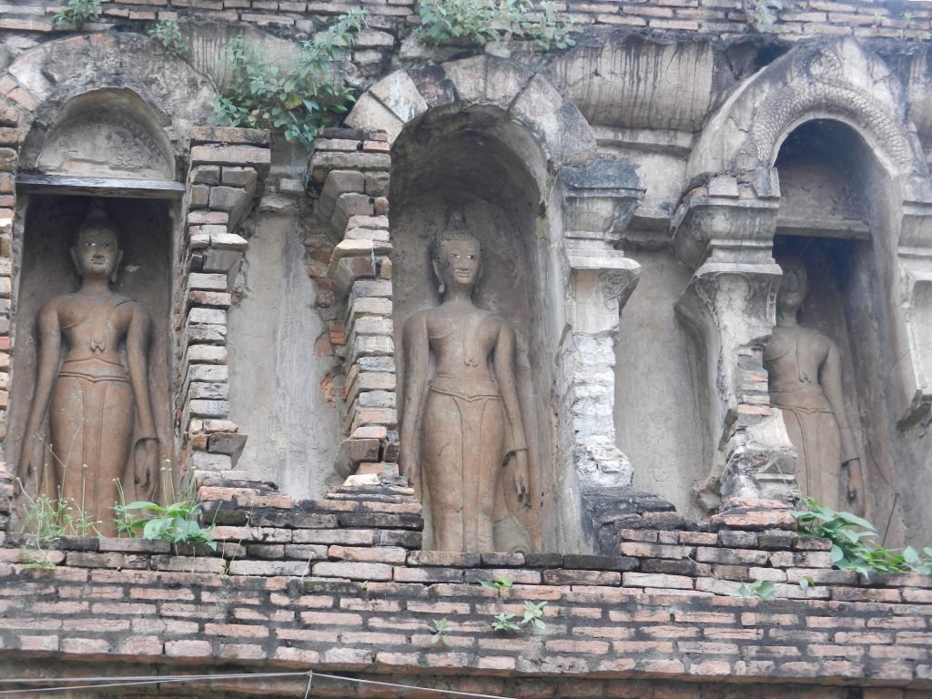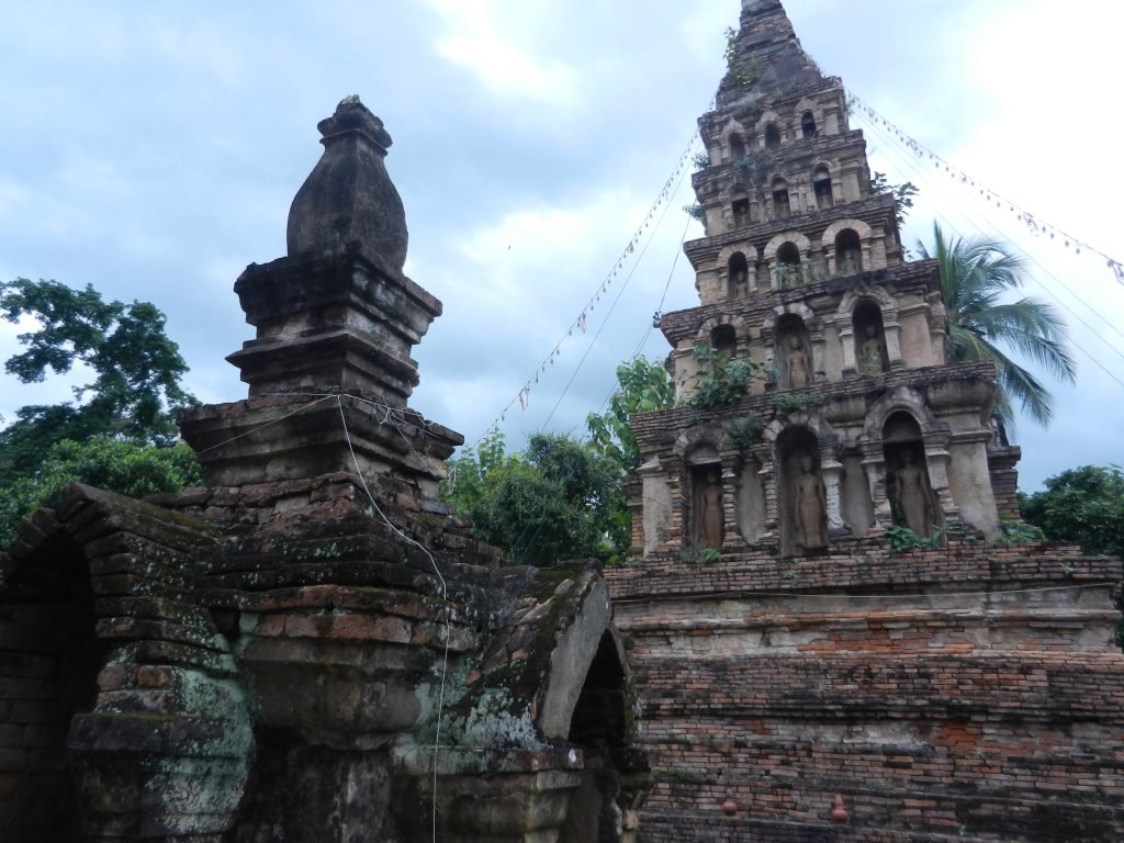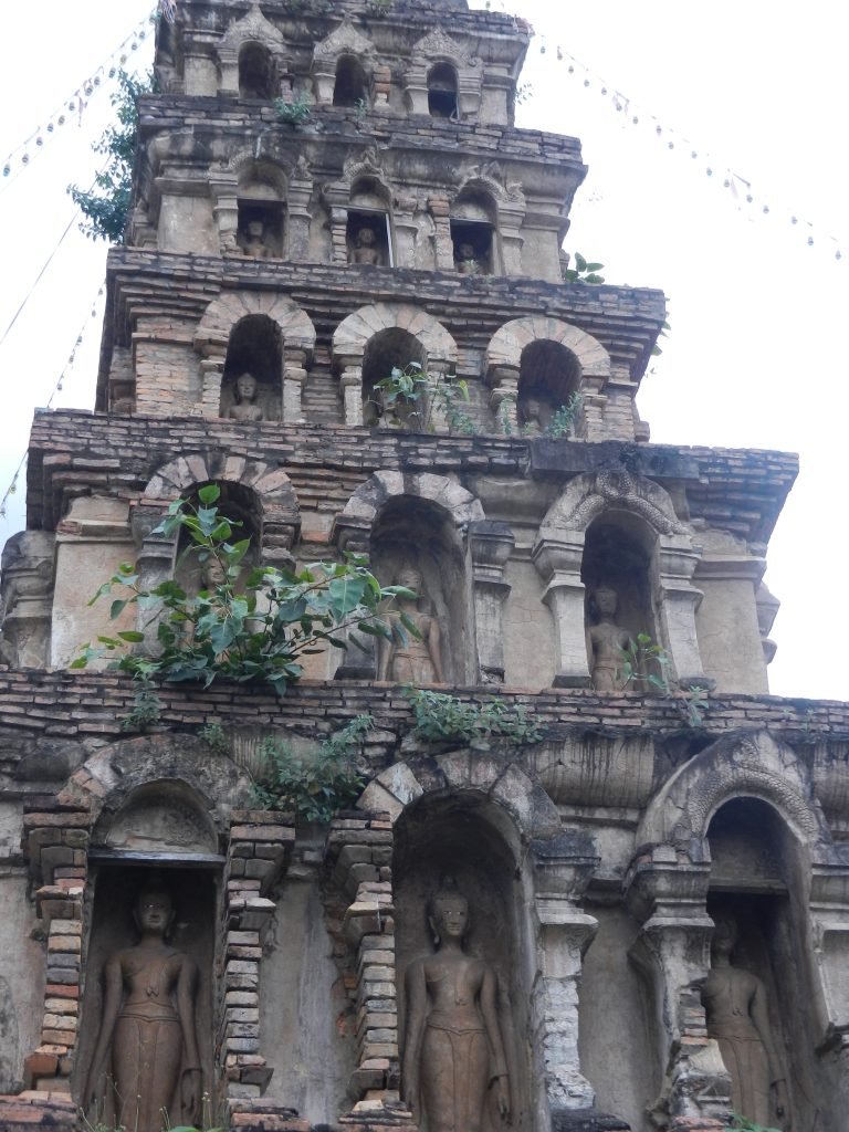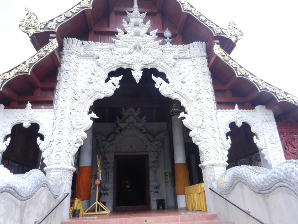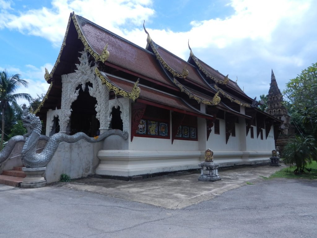 The tall building on the right is the stupa, and its thin pyramidal shape came from a kingdom called Haripunchai. It thrived before Lan Na took it over in the late 13th century. Builders of several northern Thai wats’ stupas incorporated this form.