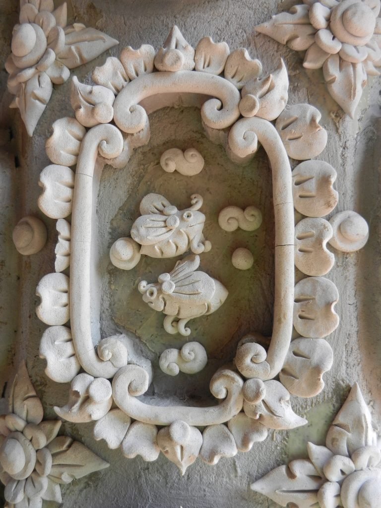 Artisans recently added plaster decorations to pillars on the outside of the assembly hall. The flowers and leaves in the above shot also project graceful flame patterns.